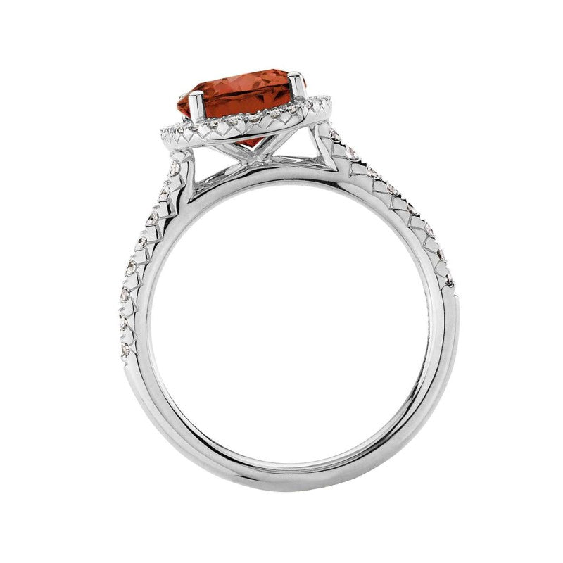 10x8mm oval garnet framed by forty-four pavé-set round 0.30ct diamonds on a 18k white gold band. Rhodium plated and UK Hallmark