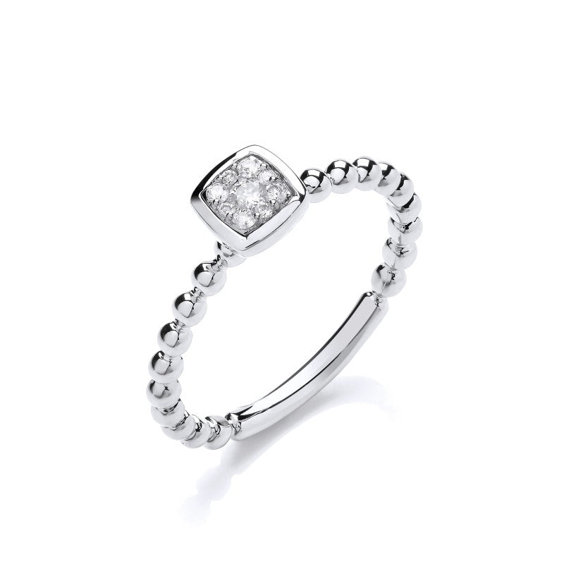 9K White Gold 0.10CT Beaded Shank Square Top Ring